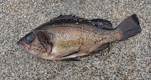 荘内半島周辺でアナゴ50cm頭に2尾、コノシロ25cm頭に5尾、アコウ30cm頭に2尾、カサゴ20cm頭に4尾。