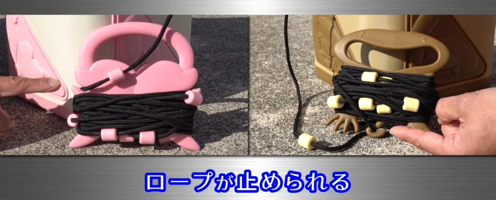 滑り止めがあることで、濡れた状態のロープでもスムーズに持ち上げることができます。また、巻取りパーツにはロープ止めがついているので、キレイに束ねておけます。
