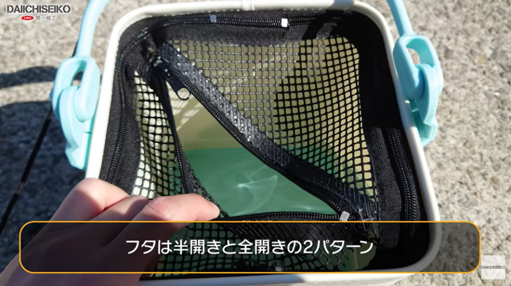 フタはメッシュ素材で、全開とちょい開けの2パターンで使い分けることができます。