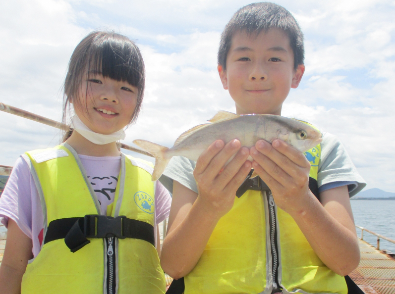 ボラ55.5cm頭に2尾、チヌ48.5cm頭に8尾、メイタ38cm頭に10尾、ヘダイ46cm頭に4尾、バリ45cm頭に35尾、ヒラメ41cm頭に2尾、セイゴ40cm頭に16尾、クロ30cm頭に20尾、ネリゴ28cm頭に40尾、アコウ25cm頭に5尾、ヤズ25cm頭に298尾、キス24cm、マダイ22cm頭に2尾、アジ25cm頭に4206尾、ベラ21cm頭に28尾、メバル15cm、シマアジ15cm、サバ15cm頭に60尾、トウゴロウイワシ14cm頭に430尾、イワシ13cm頭に190尾。