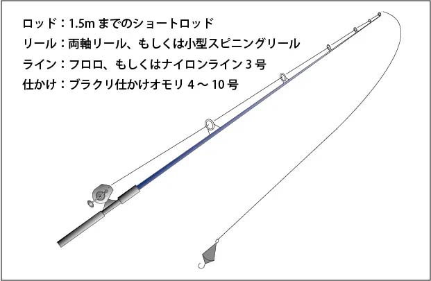 探り釣りのタックルや仕かけの目安は、こんな感じです↓