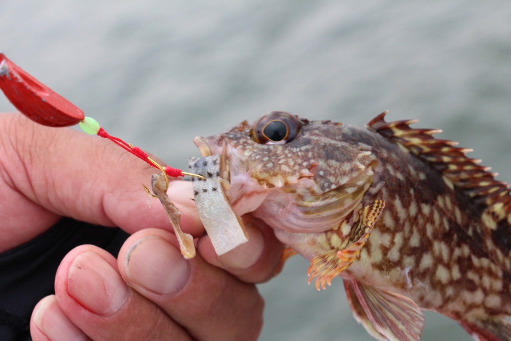 当日もアタリがなかった時間帯に数投だけ試したところ、見事にカサゴがヒットしていました。
