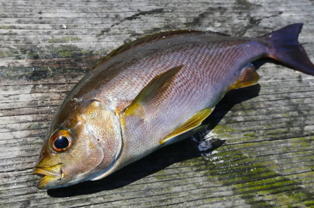 釣りではオキアミなどで狙えるほか、近年は小型のジグ(SLJ)で狙うルアーフィッシングが人気です。