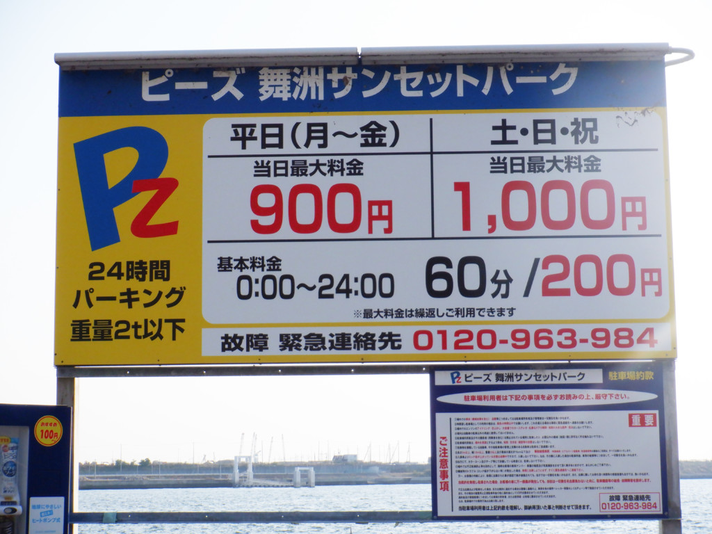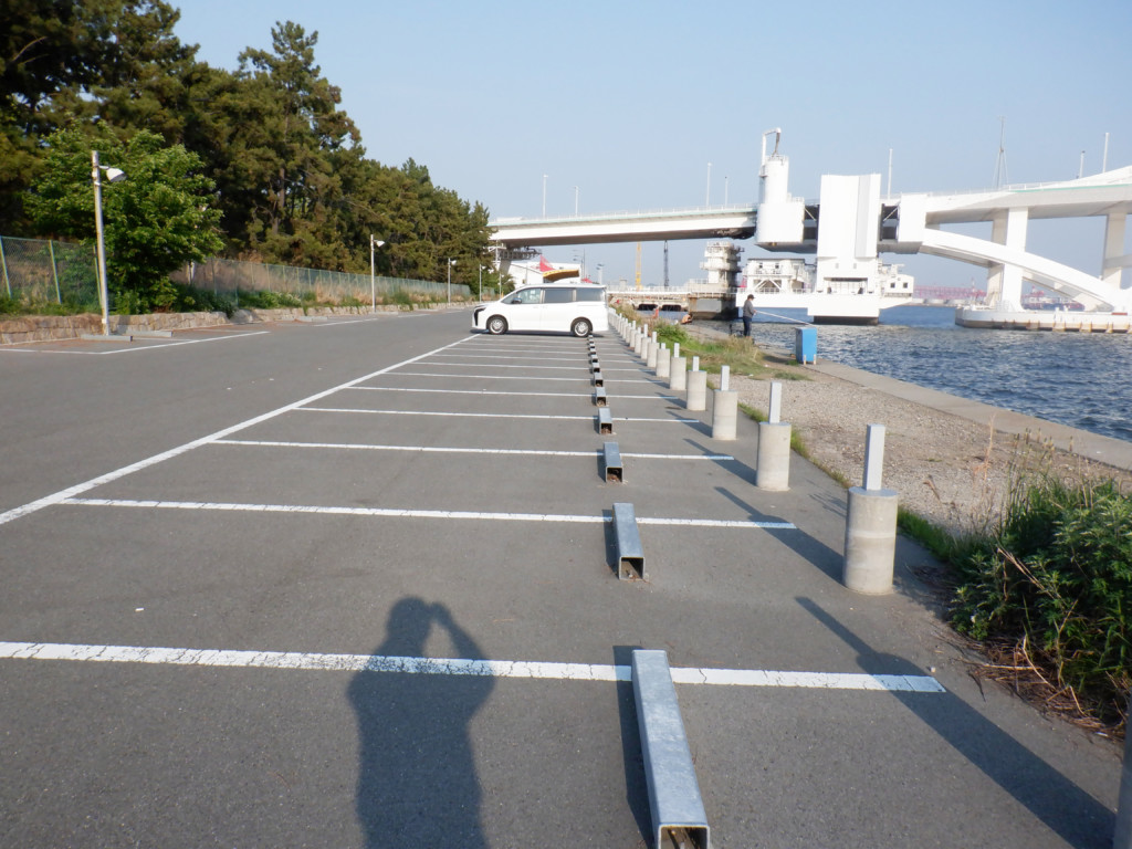 アクセスは車の場合、南港のATC側からだと夢咲トンネルをくぐりぬけて道なりに夢舞大橋を渡り、すぐの信号を右へUターン。左車線の側道を真っ直ぐ進むと、突き当たりが橋下の釣り場で、有料駐車場がある。
