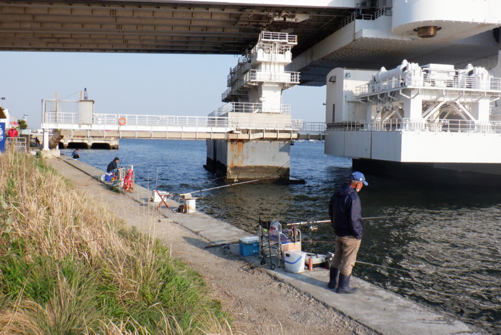 大橋下は好ポイントで、連日のように釣り人が竿を出している。