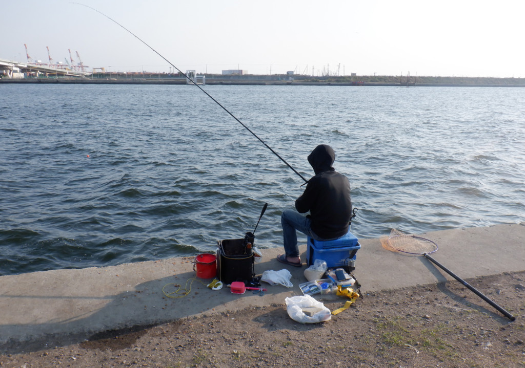 ▲竿下の沈め釣りでチヌを狙う釣り人
