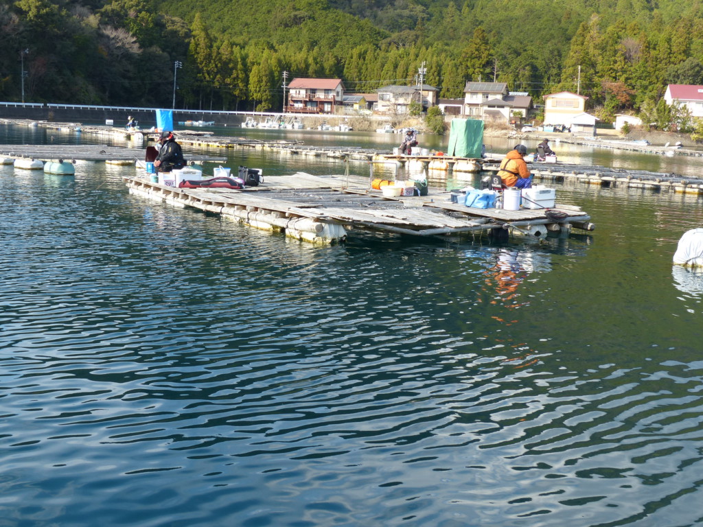 今回紹介するはしもと渡船の筏は8台、カセは2隻。筏の水深は6-8mで潮の流れは少しある。