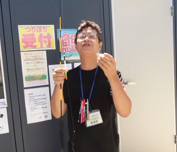 ③受付で確認後、仕かけ付きの竿とエサが渡される