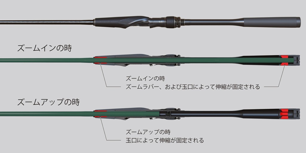 シマノの「エクスセンス ズーム」は、いつでも簡単にロッドの長さが変えられるズームロッド。