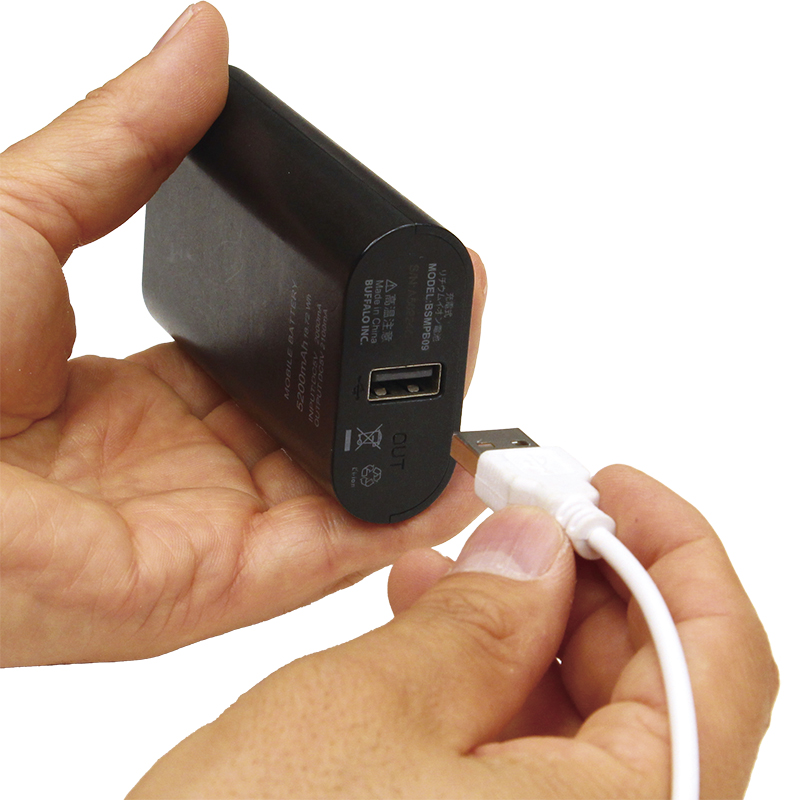 循環ポンプとなると電源が気になりますが、これは電池式ではなくて、お手持ちのUSBモバイルバッテリーから電源を取るタイプ。乾電池を持っていったり、コンセントが必要な家庭用とは異なり、釣り場での使い勝手も抜群です。