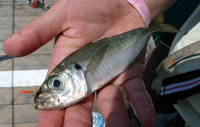 代表的な活きエサ:アジ(写真㊤)、ウグイ(写真㊦)
