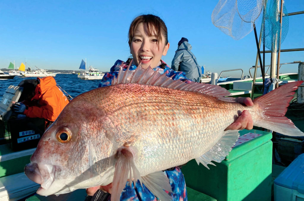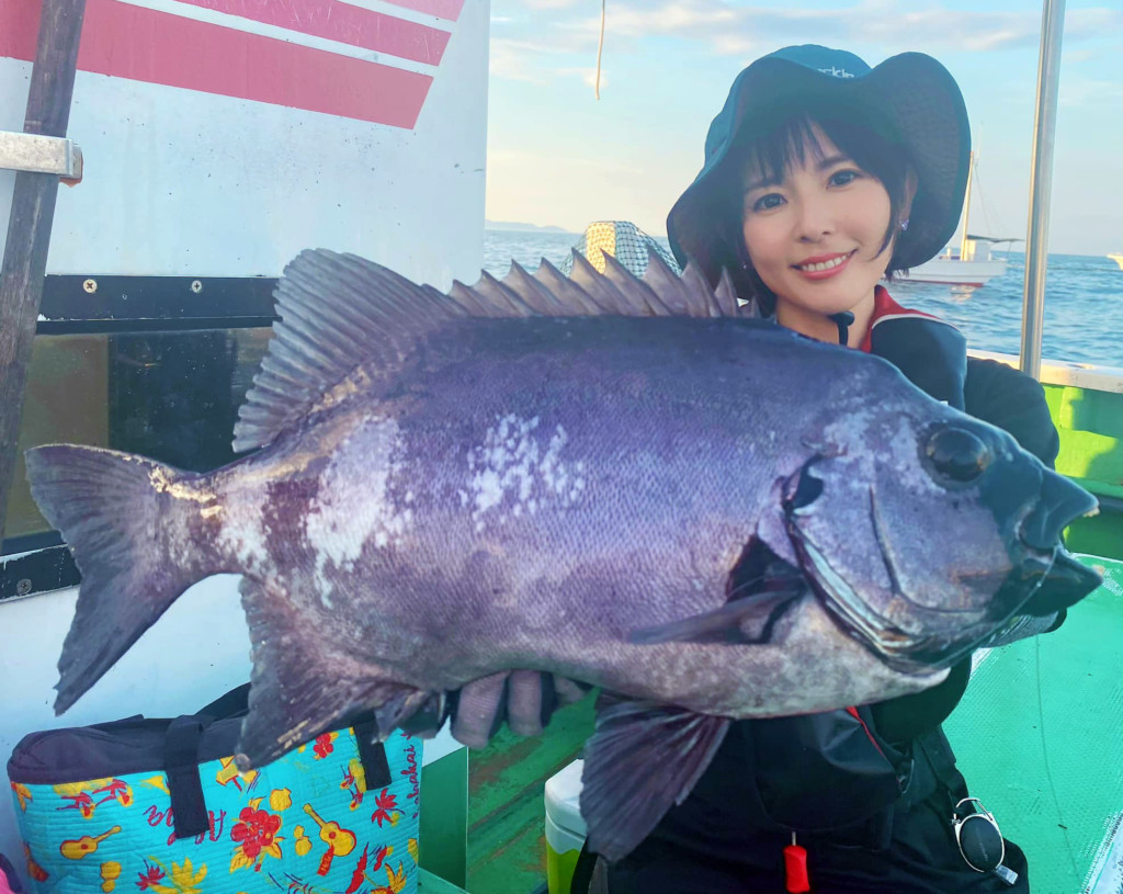 なおちん(井上直美さん)が、手にするマダイにイシダイ、そしてワラサ…。ぜ~んぶアルファタックルのグラスロッド「グラスラムオーバー」でのキャッチ。