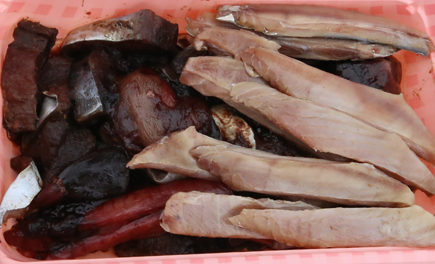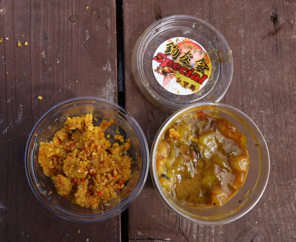 当日反応がよかったのはカツオの切り身(画像左側)、カツオのハラモ(画像右)に反応がよいことも
