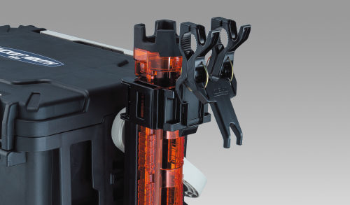 船べりのロッドスタンドやレールに装着が可能なので、ジグの交換時やエサを付ける時など、ちょっとした作業の時に重宝します。