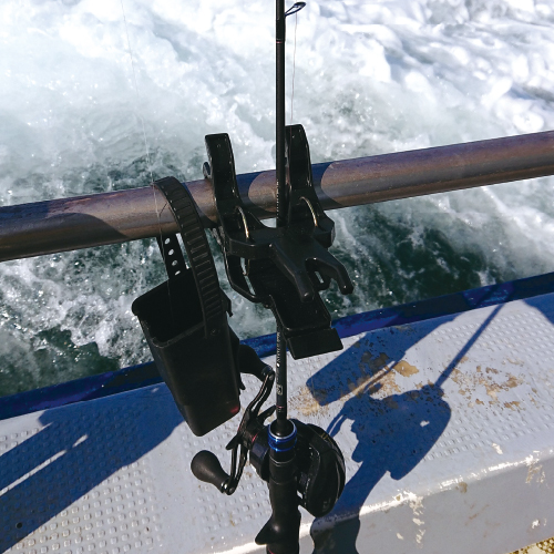 【船べりのロッドホルダーやレールにも取付可能】クリップ型の簡易ロッドスタンド「マルチクリップBM-L」が優れモノなんです
