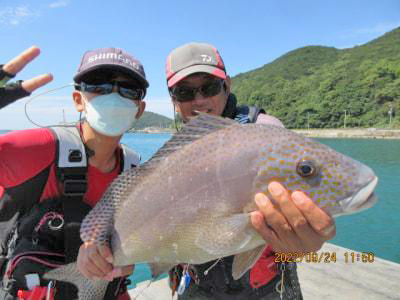 根本氏メジロ61.5cm、高田氏カワハギ14~16cm36尾。