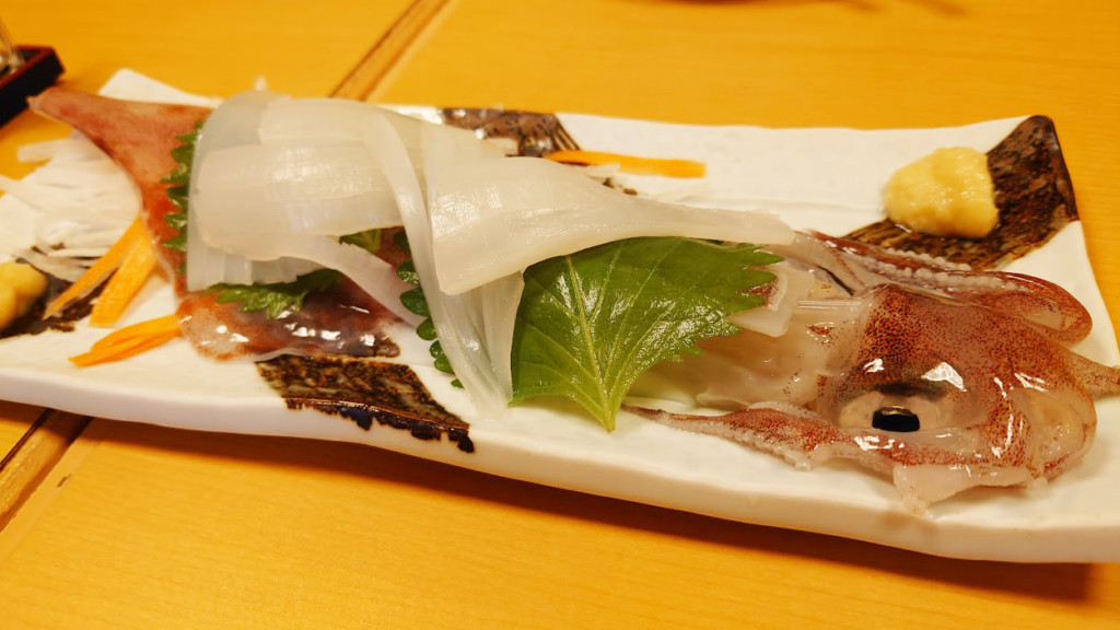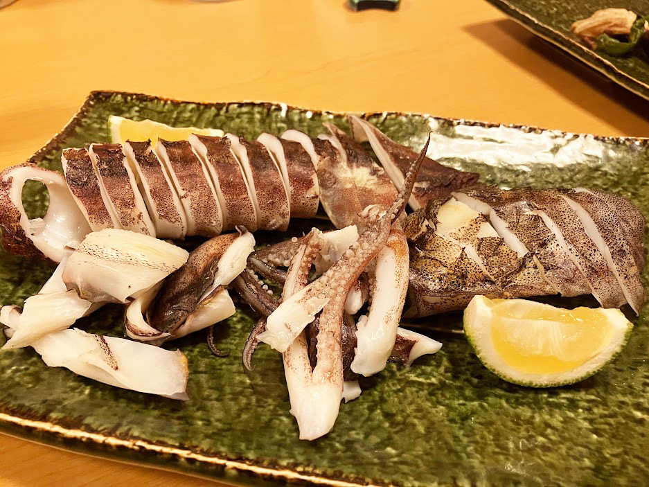 鳥取から自宅に帰ってすぐに料理するまでもなく、港からわずか10分少々で着く料理店で、プロの料理人が鮮度のよいイカや魚を美味しく調理してくれます。
