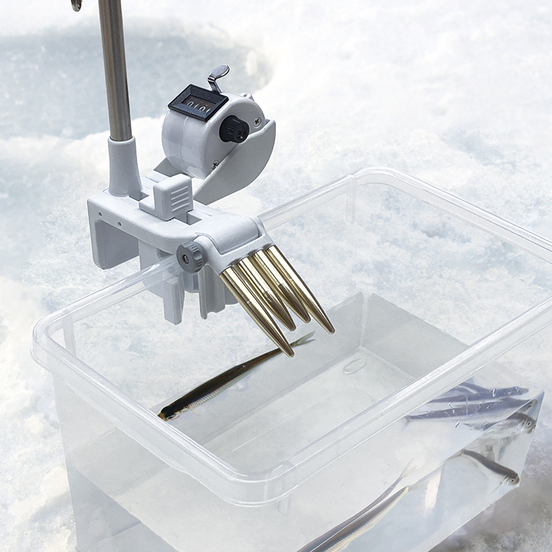 ワカサギ釣りのお供に【バケツや水槽への取り付けが超簡単!!】アンテナとカウンターがセットになった「オールインワンワカサギ外し」