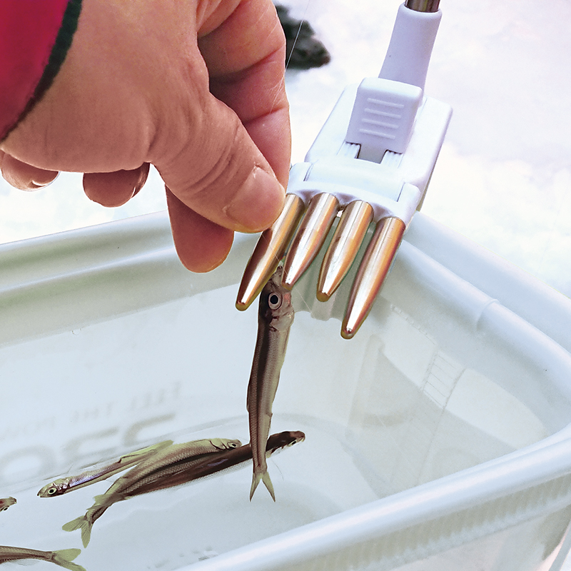 これから各地で続々とシーズンが開幕していくワカサギ釣り。針外しがあれば、魚を触らずに釣りができるので、子供や女性もより手軽にエントリーしやすくなります。