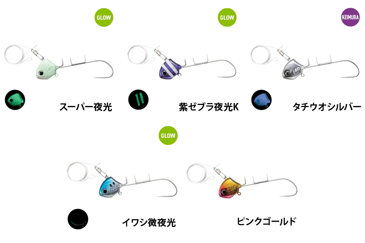 サーベルマスター船テンヤは、オールグロー1色、ゼブラグロー2色、無発光7色の計10色で展開されているので、その状況に合わせたカラー選択ができるから、だそうです。