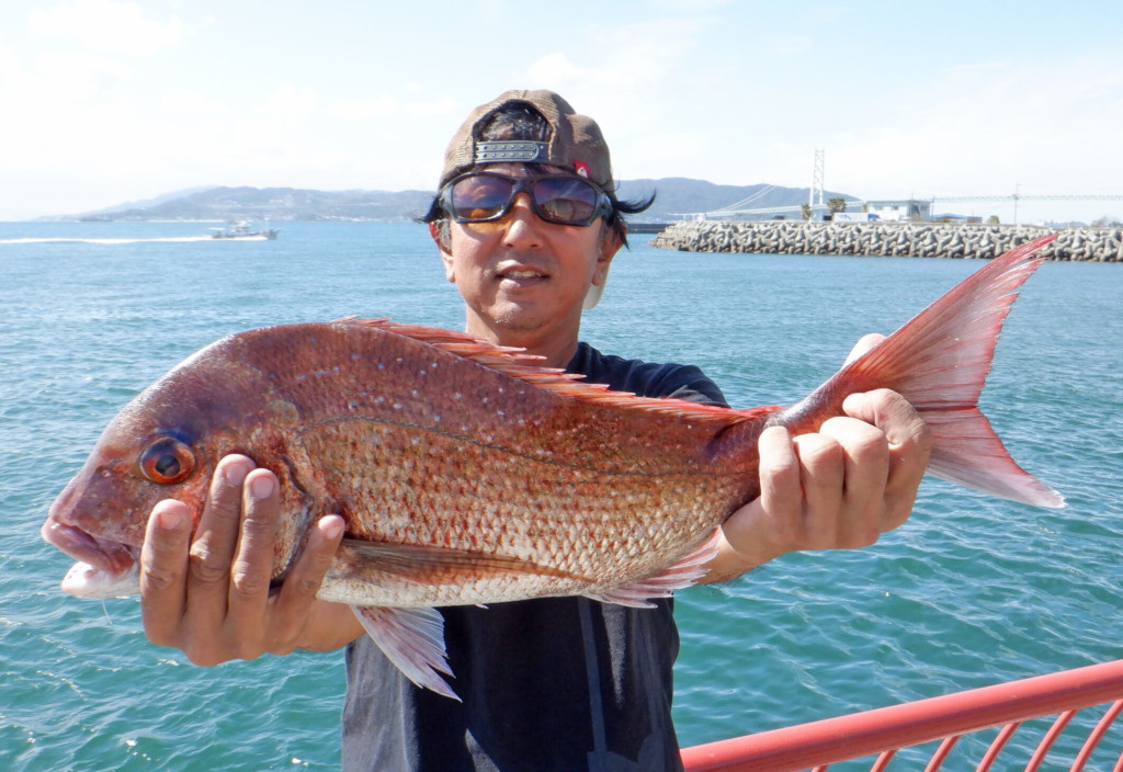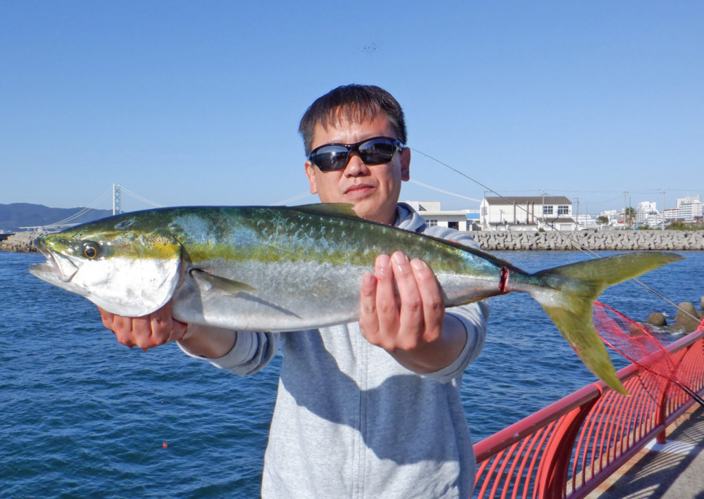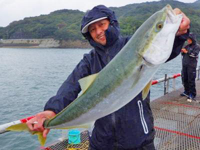 メジロ60cm、ハマチ46cm頭に多数、シオ46cm頭に3尾、マダイ49cm、カンダイ80cm頭に2尾、チヌ42cm頭に2尾、ヘダイ29cm、アイブリ34cm、カワハギ23cm頭に多数、ヒラメ50cm頭に2尾、グレ、ウマヅラハギ、アオリイカ、コウイカ、マダコ、メバル、タチウオ多数、アジをサビキ釣りやカゴ釣りで。