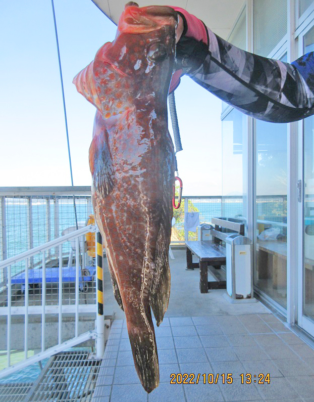 チヌ30~47cm6尾、グレ20~33cm75尾、アオリイカ胴長10~15cm63バイ、カワハギ10~20cm167尾、アコウ20~30cm5尾、ガシラ15~20cm6尾、ベラ15cm前後4尾、アジ10~15cm23尾。