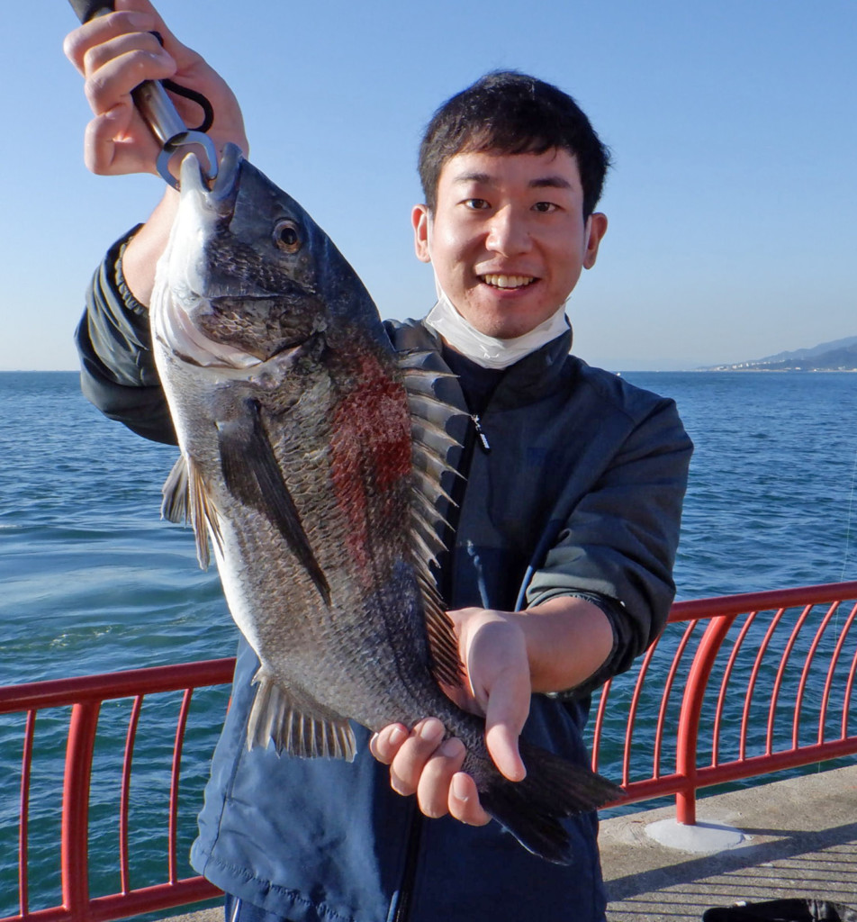 坂道氏チヌ49cm、福沢氏メジロ61cm。