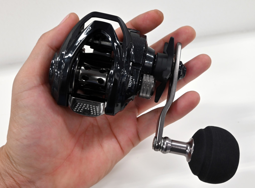そうした釣り物の多くでは、アクションを付けて誘ったりすることが大なり小なりあることが多く、ロッド(リールシート)の上側に装着する両軸リールでは握りやすさは重要。