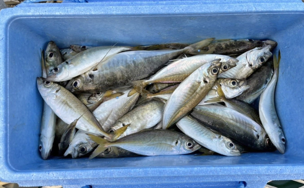アジ23cm頭に60尾、カマス22cm頭に3尾、チヌ39cm頭に2尾、カワハギ15cm頭に5尾、カサゴ17cm頭に4尾。