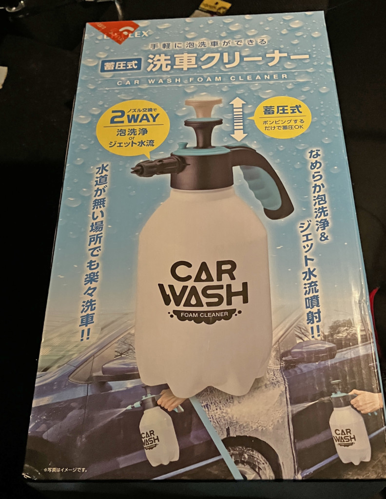 容量は2ℓ。ホース部分はなし、パッケージを開けると、噴射ノズルが2種類付いており、泡洗浄か水洗浄を使い分けるようだ。