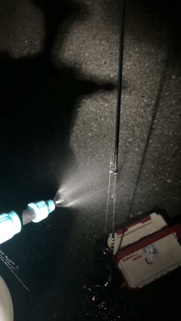 さらに、ノズル部分が長く、釣りで使うには自分でカットして加工する必要があり、そして意外とホース部分が車に乗せていると邪魔であった。