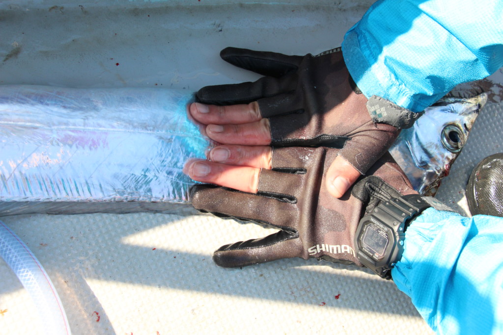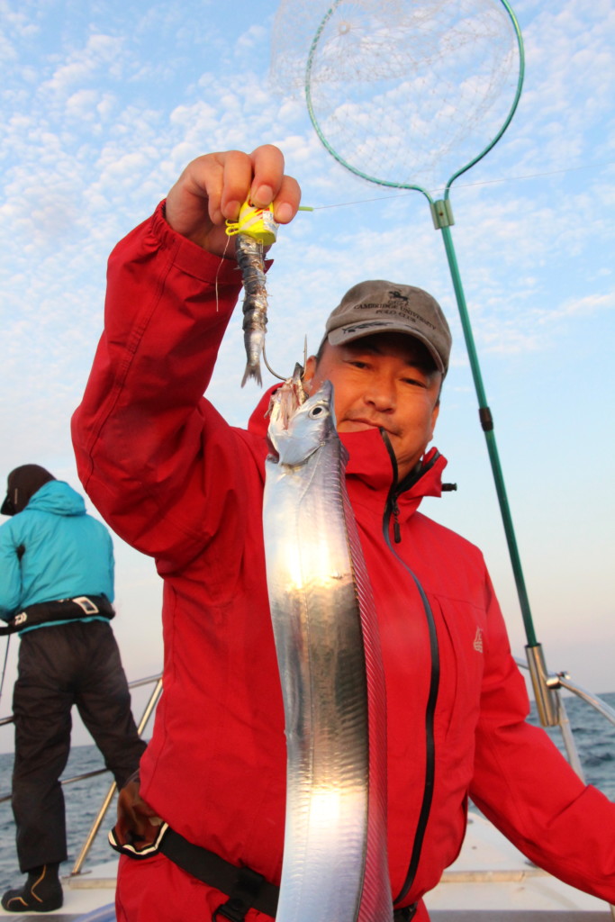 この日はテンヤタチウオ歴が1年以内の人がほとんどでしたが、幅指6本級のスーパードラゴンを頭に、皆が大型をまじえて数釣りを堪能していました。