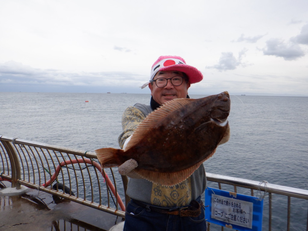 中川氏ハマチ45cmと小ダイ2尾、大野氏シオ40cm、木下氏ヒラメ52cmと40cm。