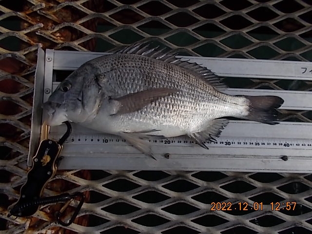 チヌ40cm、グレ25cm、サヨリ20~25cm30尾。
