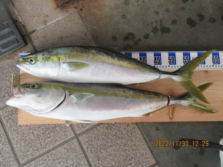 橋本氏ブリ82cm、宮脇氏メジロ63cm。