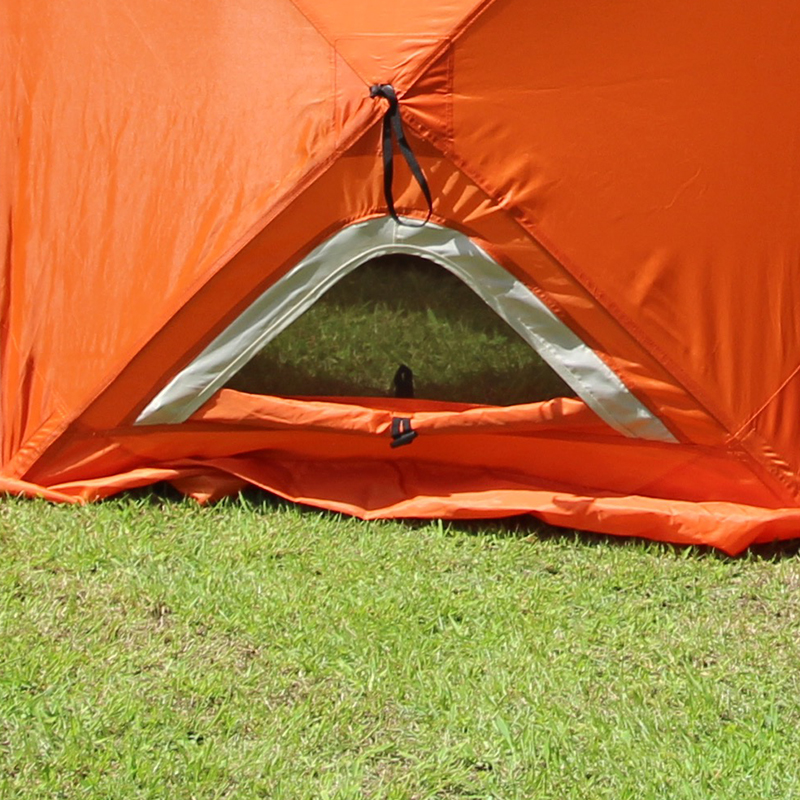 テントの4カ所に窓が設置されており、こちらも外側、内側のどちらからでも開閉が可能。出入口と同じく、クローズ、メッシュ、オープンと調整ができ、風や太陽の向きによって換気や調光がしやすくなっています。