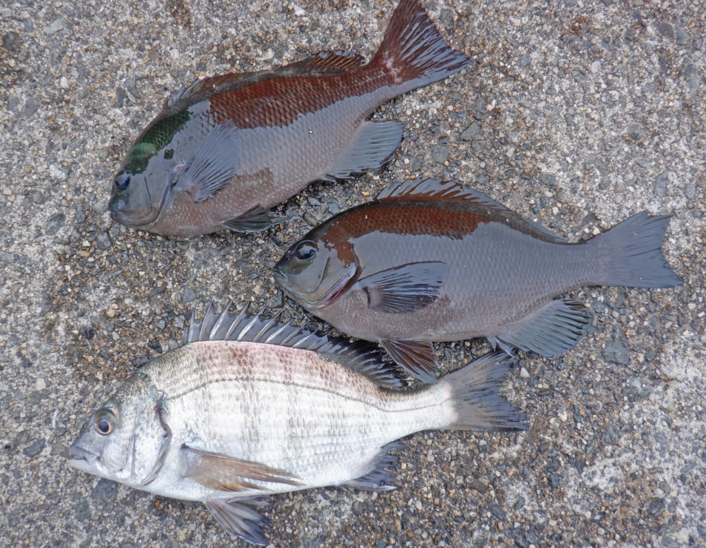 グレが多い時は、エサ取りを押し退けてエサを食いにくるが、今のところはグレよりエサ取りが多過ぎるので、フカセ釣りのグレは低調だ。