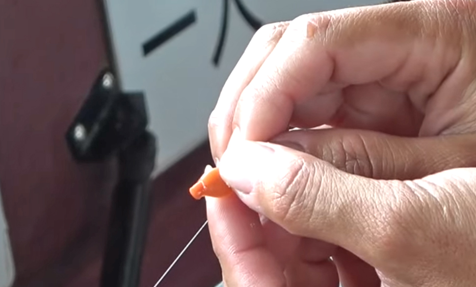使い方は簡単。仕かけの1番上の針に取り付けて、くびれ部分をカット! そうすると、中から集魚効果のあるエキスが出てきます。