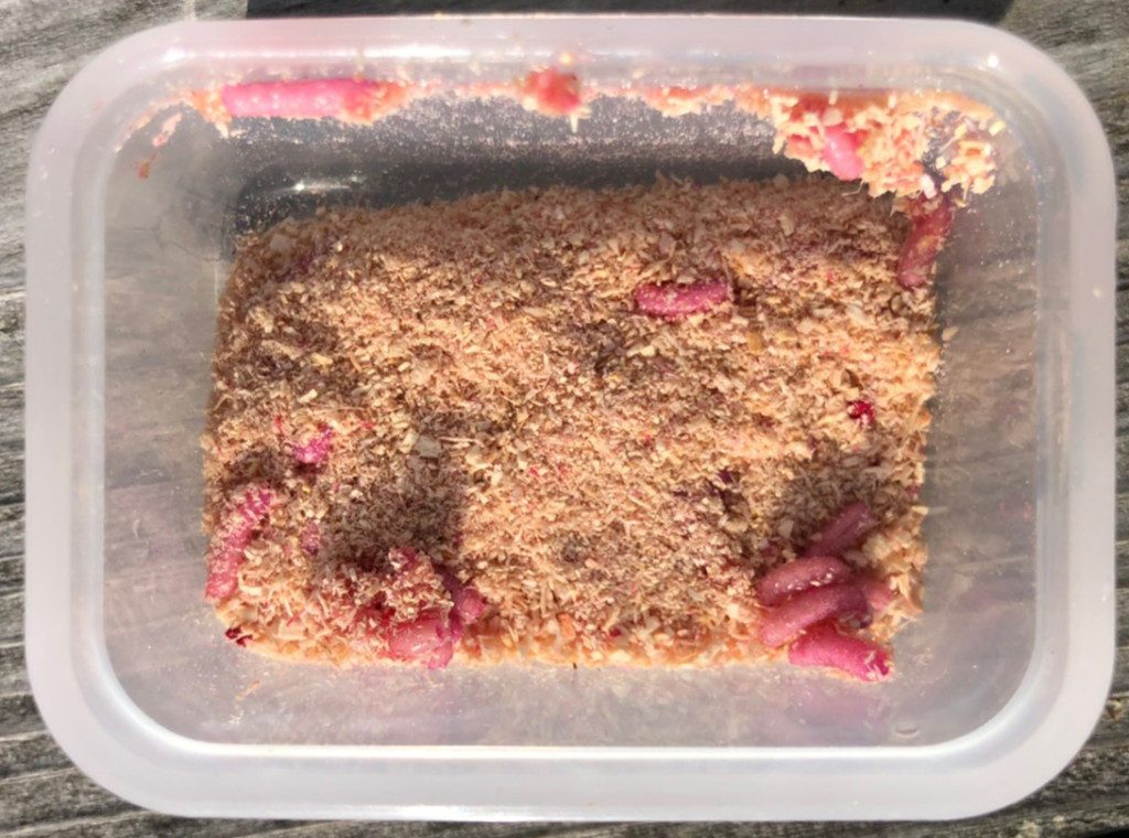 こちらがワカサギ用の人工エサ、「ハイパー紅雪」と「寄せっコ」。