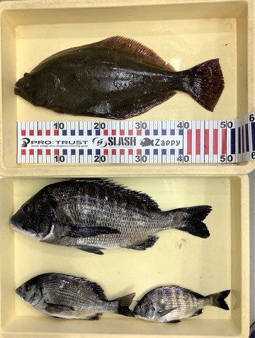 姫路周辺でヒラメ50cm、チヌ52cm頭に5尾、メバル20cm頭に10尾超、セイゴ30cm頭に10尾超。