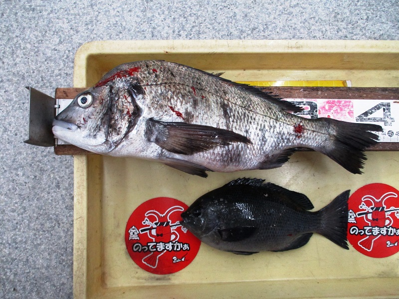 大蔵海岸でグレ28cm頭に8尾、マダイ43cm頭に3尾。