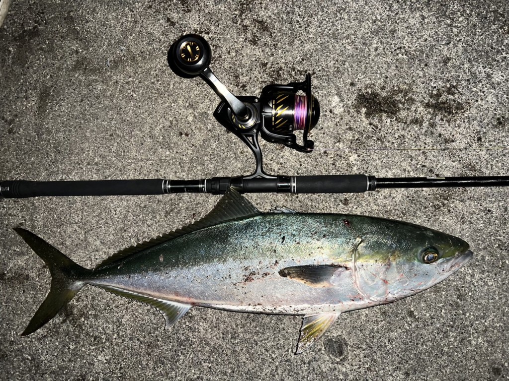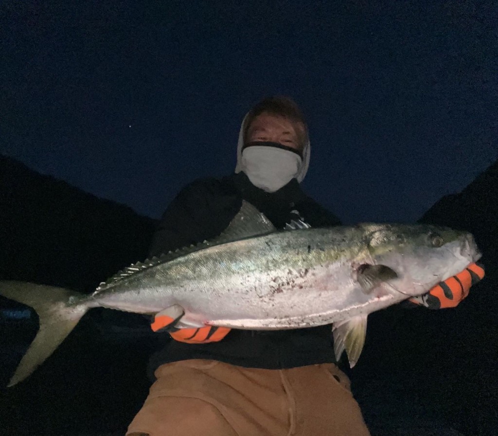 播磨新島でブリ、メジロ80cm頭に2尾。