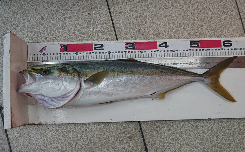 【南港周辺】で15日高橋氏メジロ67cmをノマセ釣りで。
