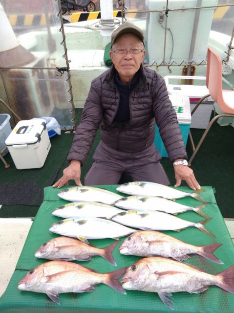 12月21日で奈良の乾氏マダイ35〜46cm4尾とハマチ47〜48cm6尾。