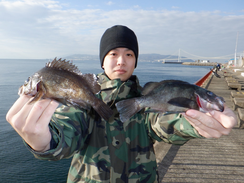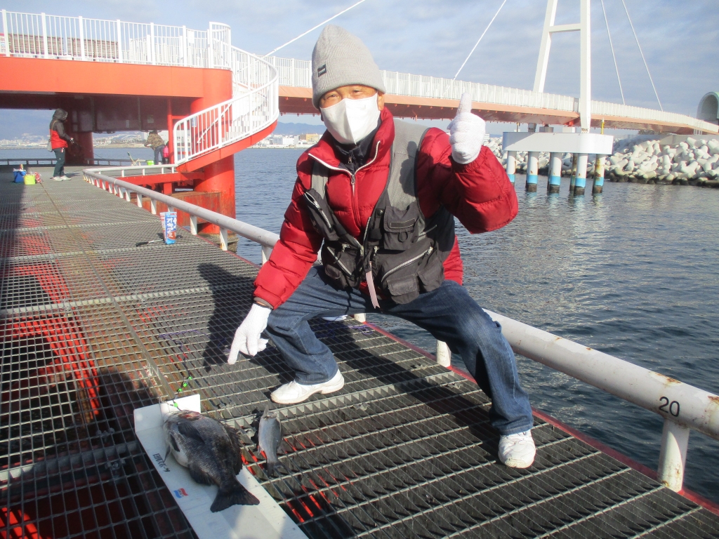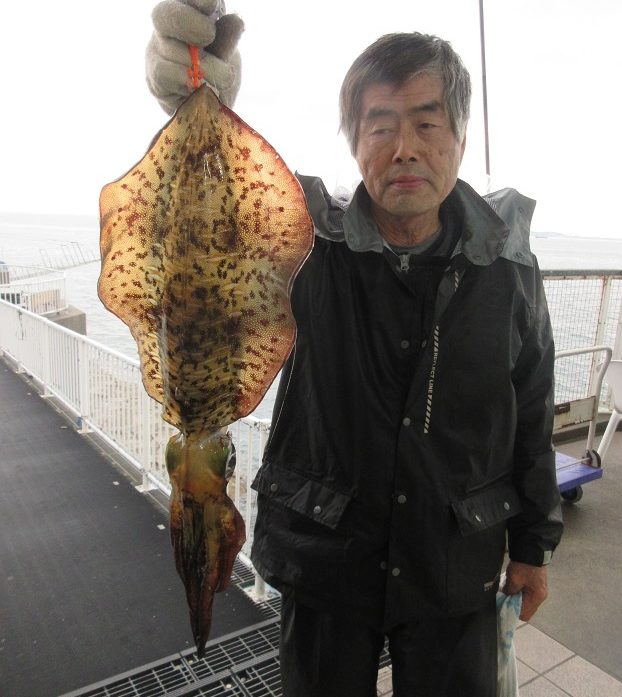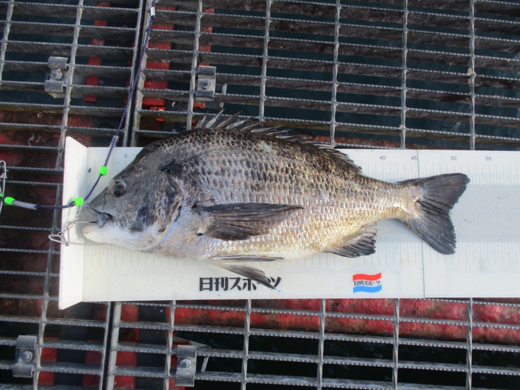 ハマチ45cm頭に2尾、マダイ33cm頭に15尾、チヌ42cm、カンダイ55cm、アジ、コウイカ、メバル、ガシラ、マダコなど。