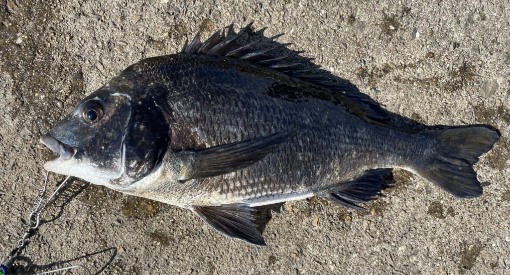 メジロ65cm、ガシラ23cm頭に3尾、チヌ49cm、メバル20~23cm8尾。