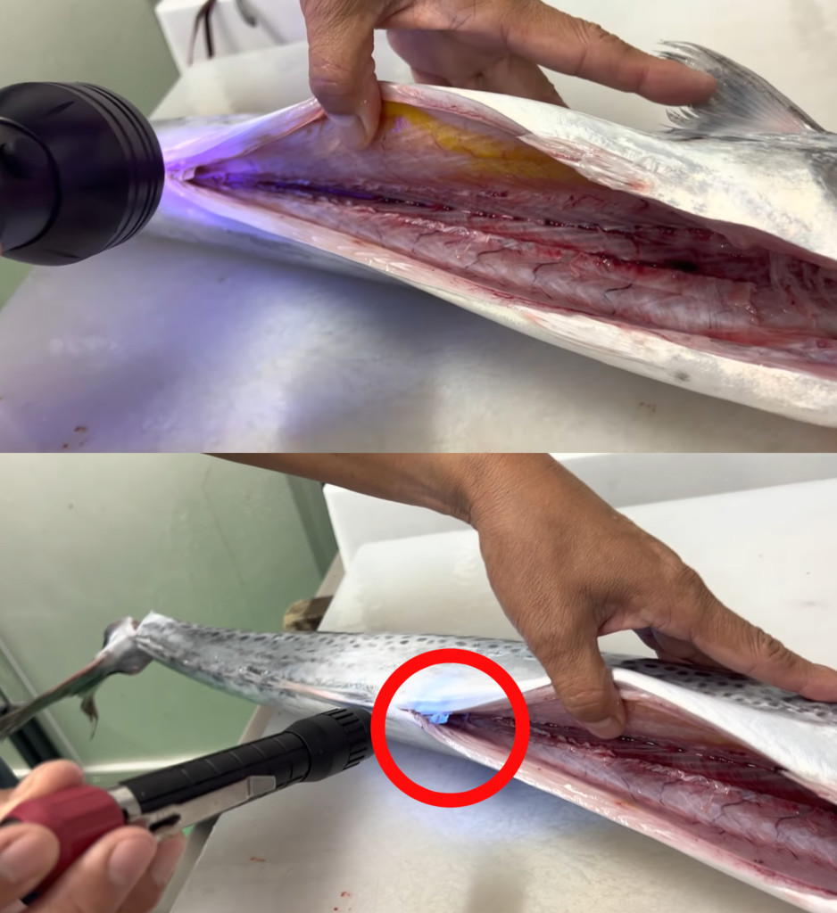 これだけ見やすく照らしてくれるので、アニサキスの有無がスグに判断できそうですね。