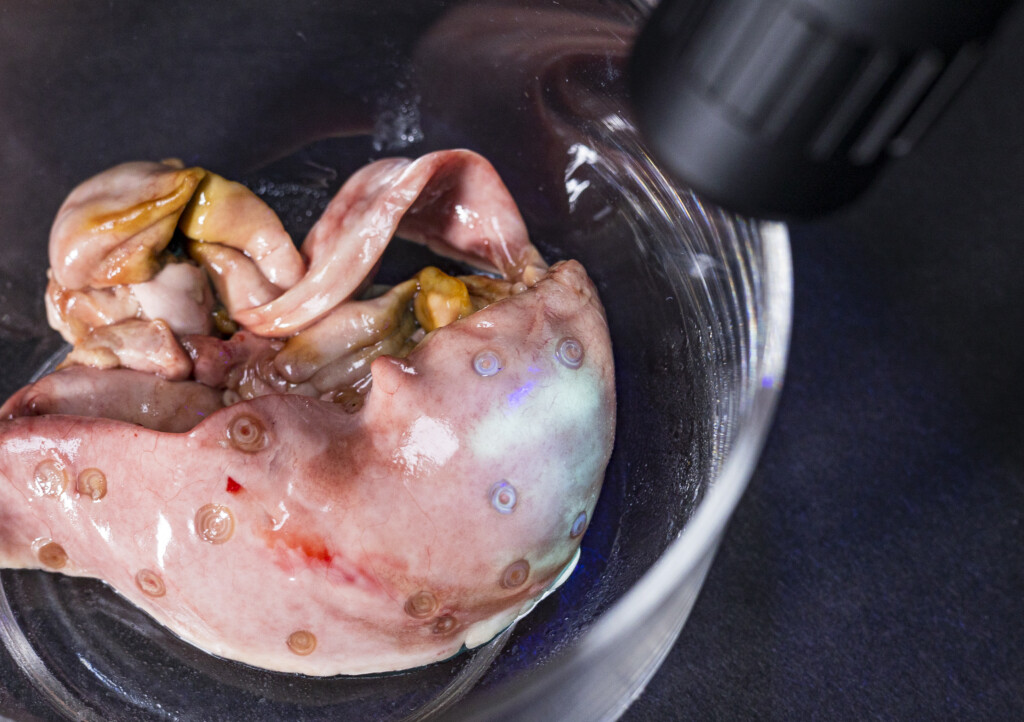 実際にアニサキスに照射してみると…