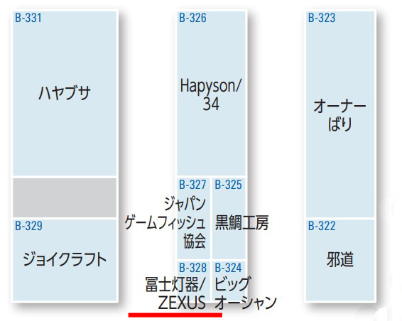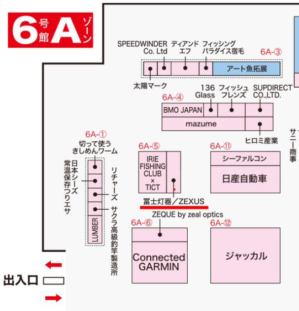 では、現在会場マップが反映中の「釣りフェスティバル 2023」と「フィッシングショー大阪」の「ZEXUS」ブース位置情報もお伝えさせていただきますね。