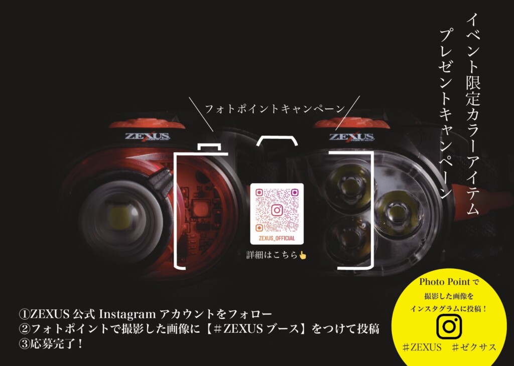 引き続き2月4日5日には「フィッシングショー大阪」が行われ、3月18日19日には福岡県で「西日本釣り博2023」が開催されるというように、3ヶ月間で3つの祭典が開催される訳ですが、夜釣り関連アイテムを手掛ける冨士灯器のヘッドライトブランドでお馴染み「ZEXUS」は何と、全会場に出展予定! そしてブース内では、抽選で豪華アイテムが当たるプレゼントキャンペーンを実施! 今回はその詳細を紹介。